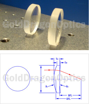 | 編號(hào)(NO.) | 焦距(EFL) | 直徑(Dia) | 半徑(R) | 中心厚(Tc) | 邊厚(Te) | 后焦距(BFL) |