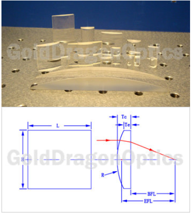 K9平凸柱面透鏡 (尺寸及鍍膜可按用戶需求定制)單位(mm)